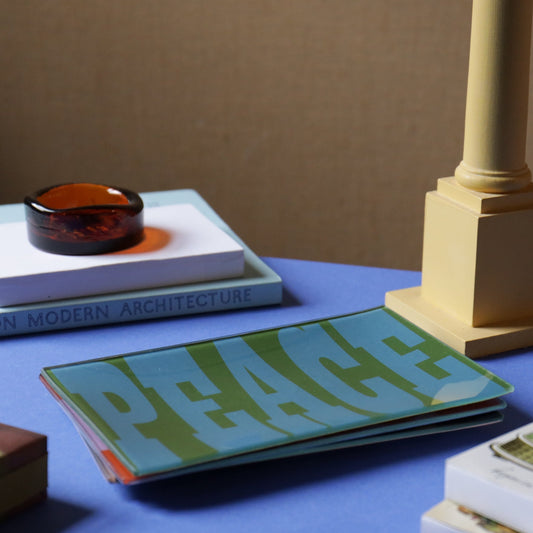 5" x 8" Peace Decoupage Tray - Bright Green & Yellow