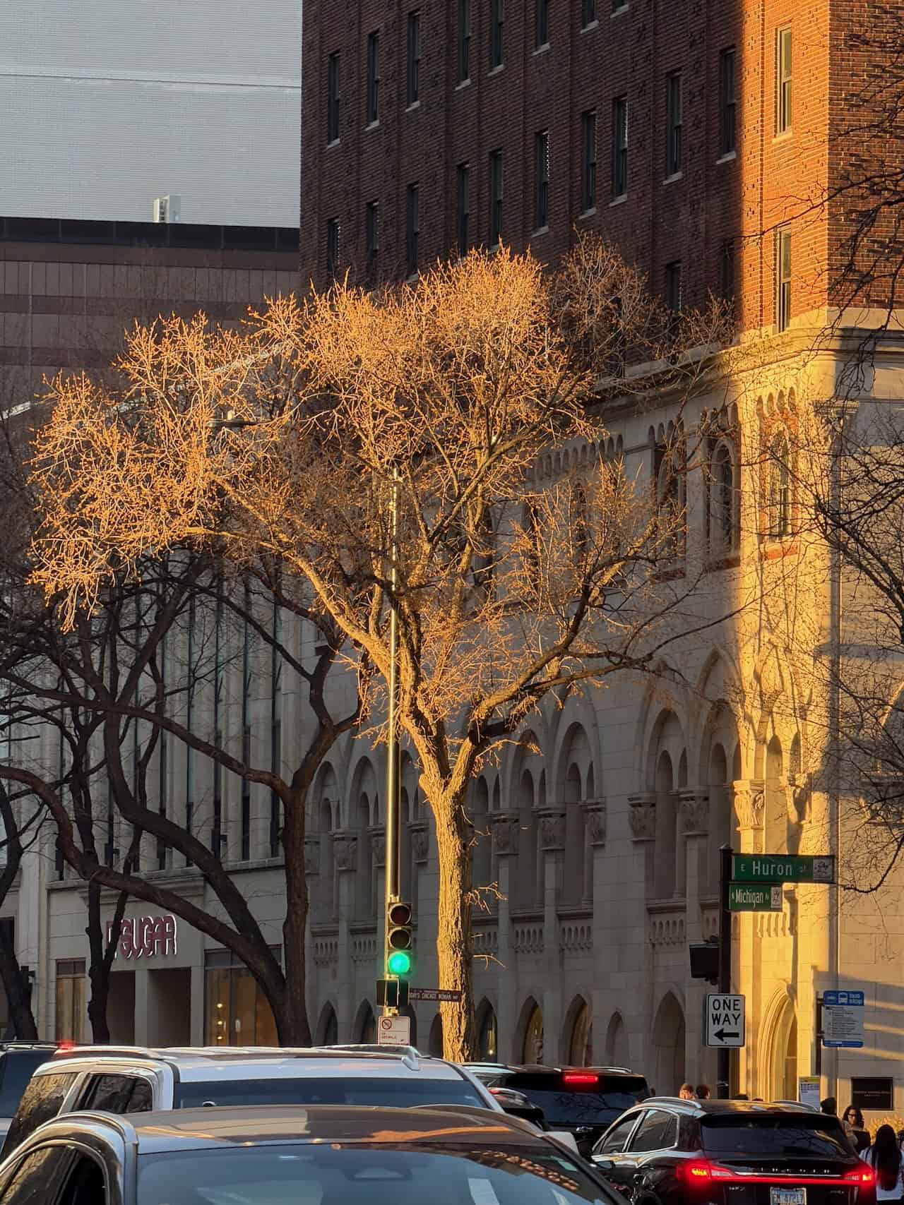 The following day, after the ceremony, I had a lovely walk in the balmy afternoon sunshine, a warm breeze blowing, the sun hot on our faces. Chicago glowed.