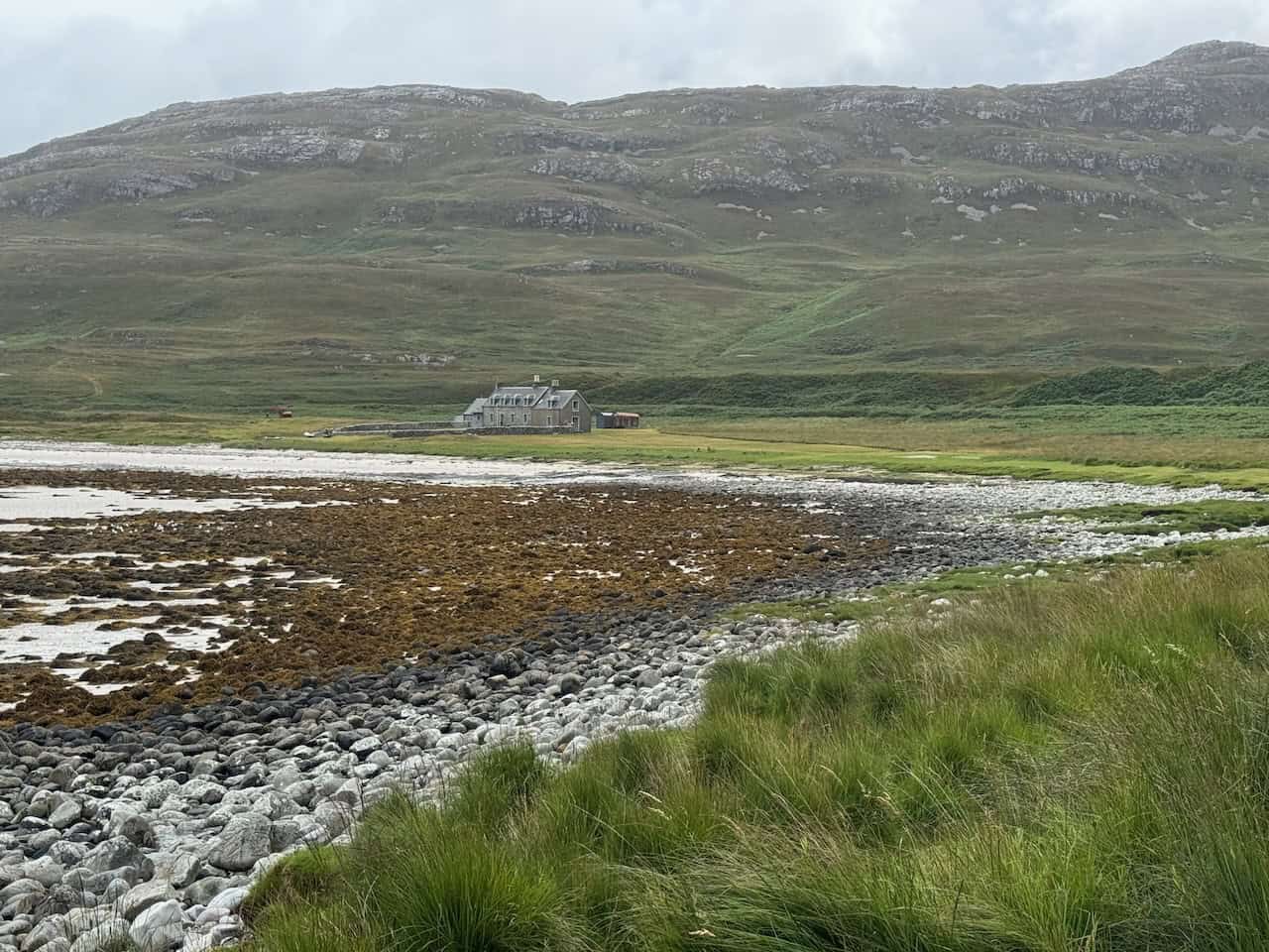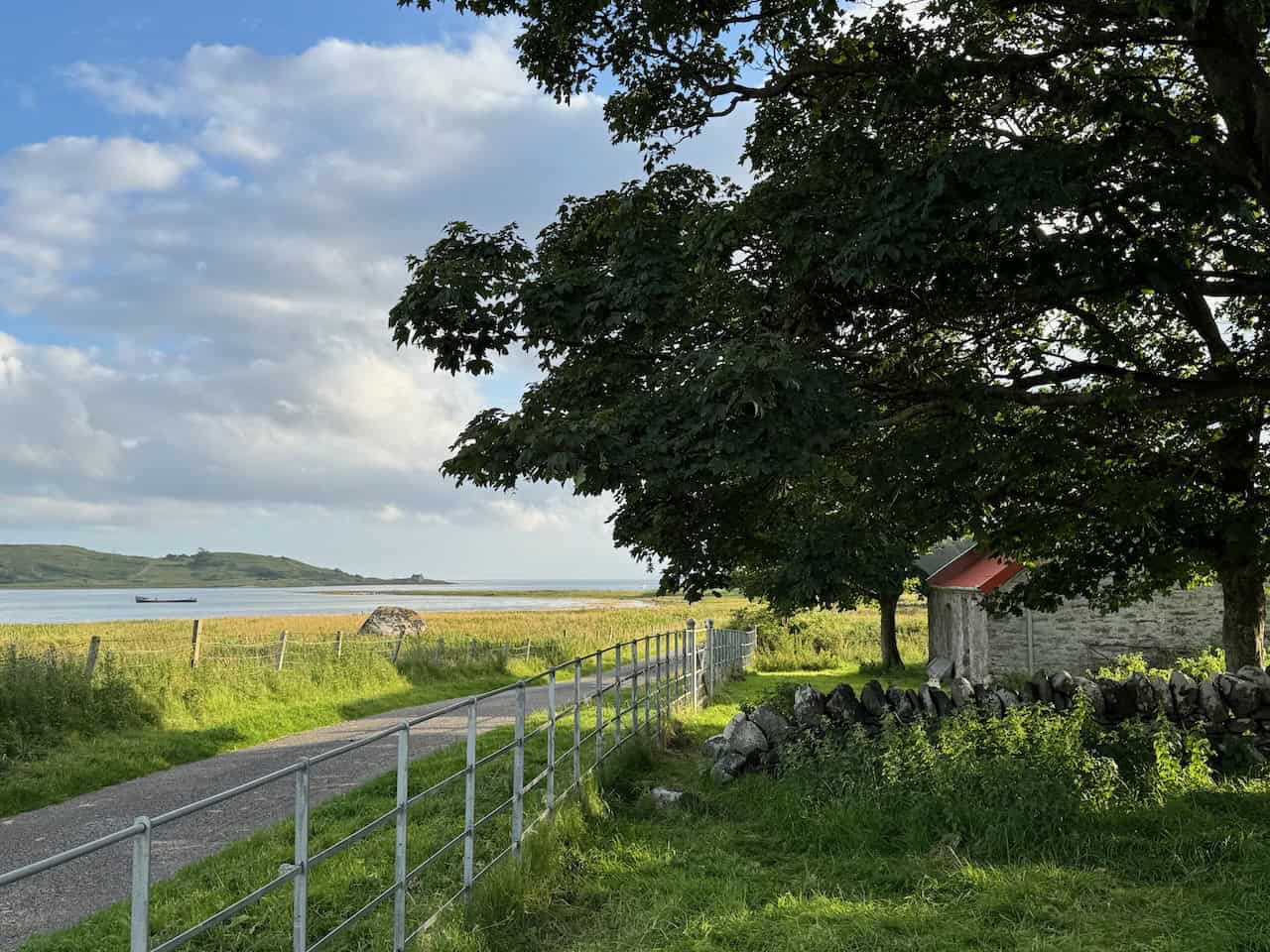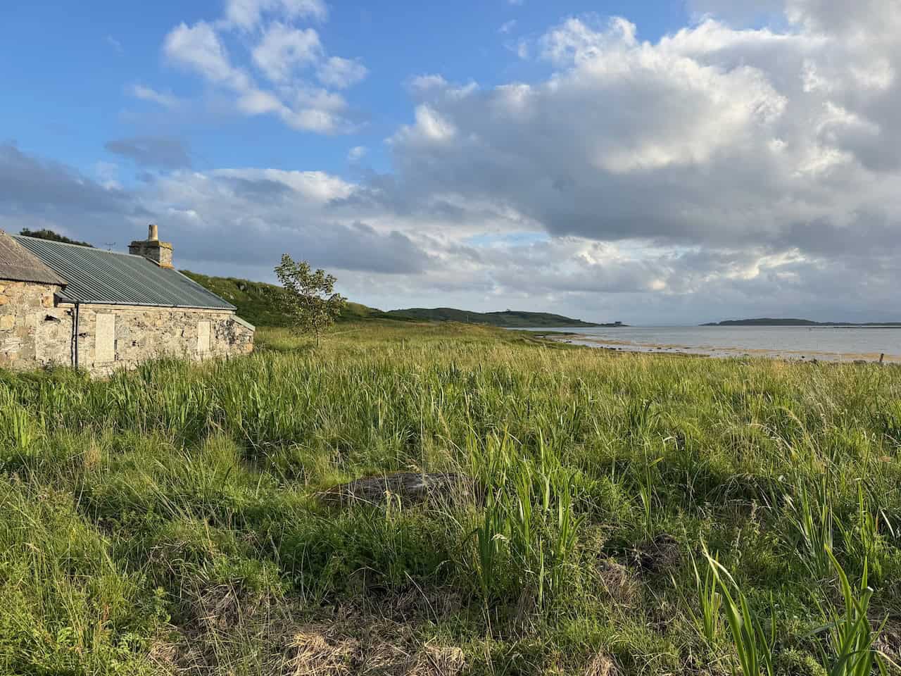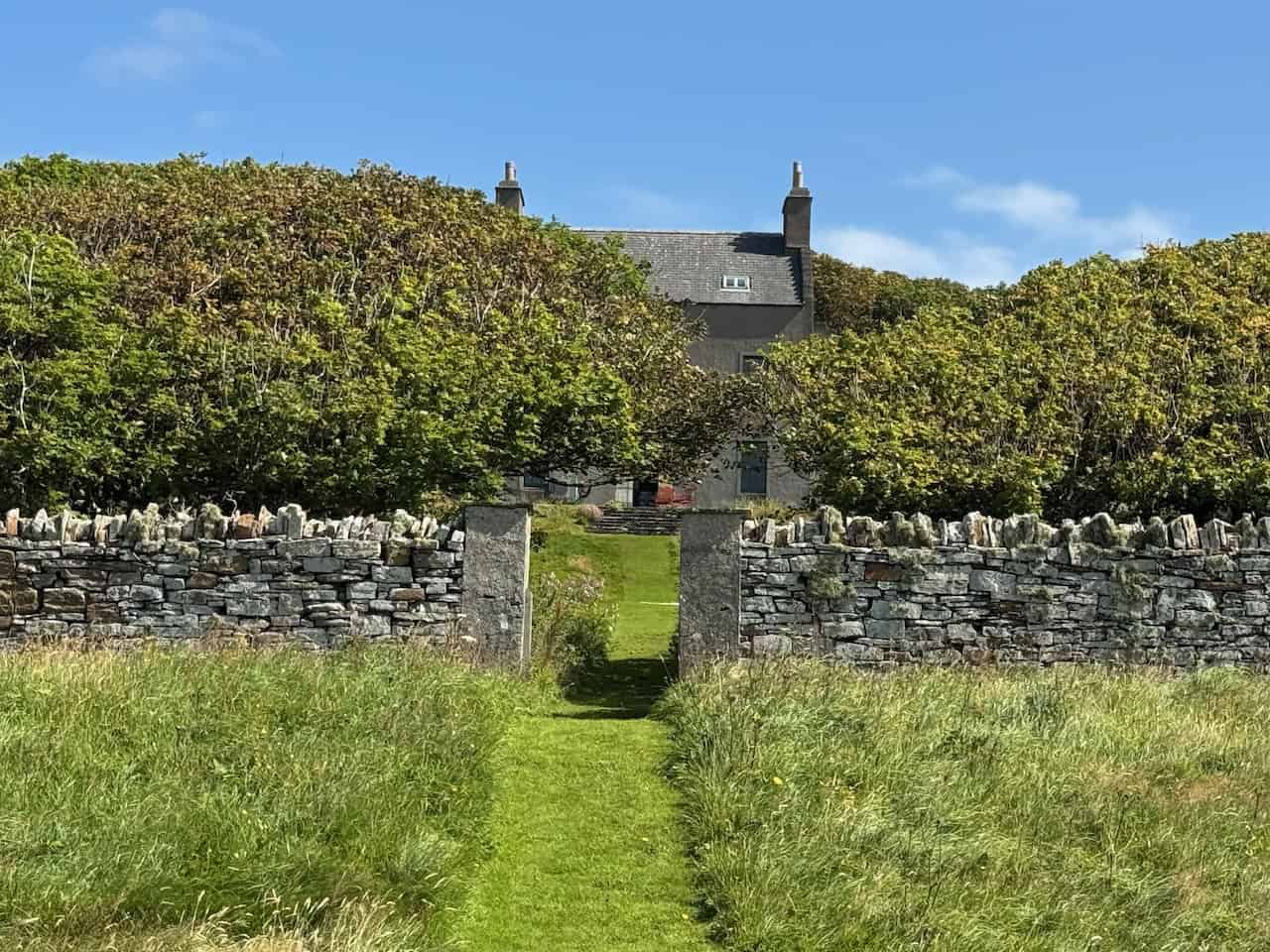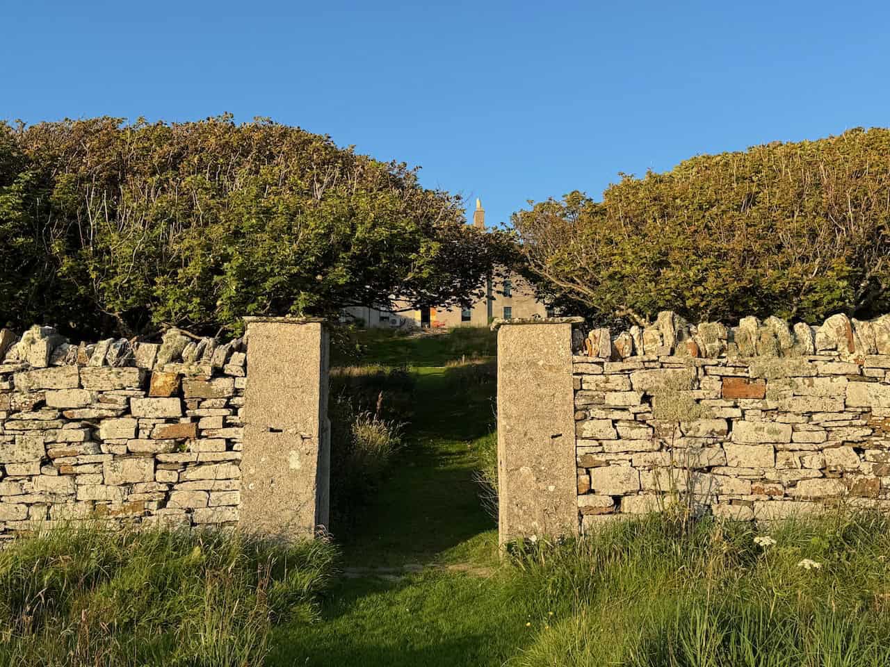 Home to Westness. Here's the farm next door with a serene sea on our walk that afternoon.