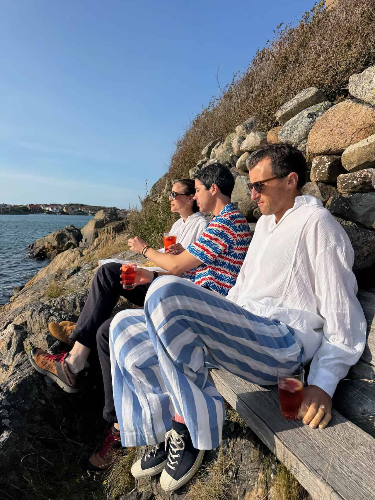 We were staying for week with our friends John and Beata, and Luke and Duncan. Here are Charlie, Luke and Beata rocking a good look as we took the tiny ferry to Beata's house.