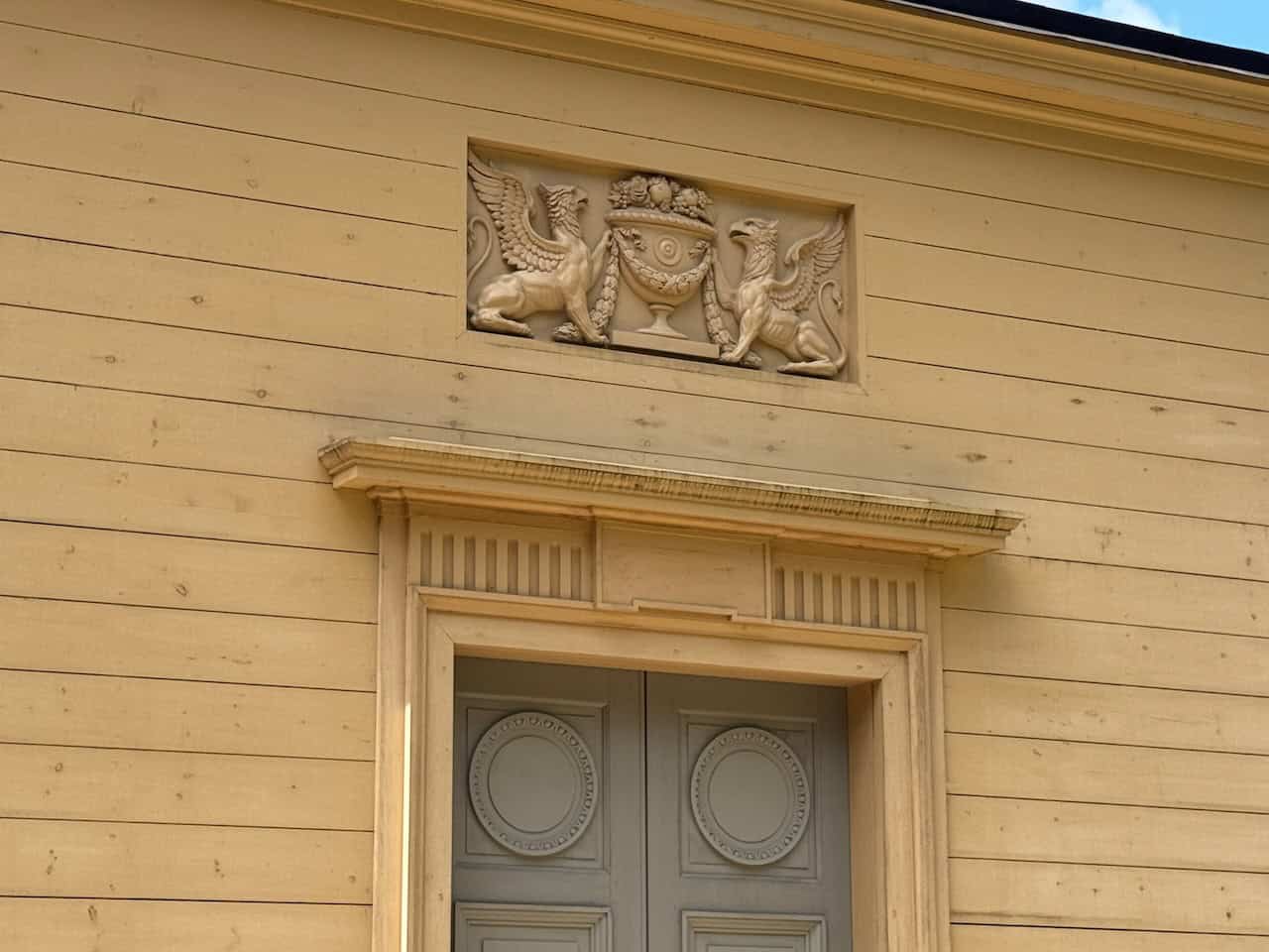 Our wonderful tour, by one of the talented team working on the building crafts here, Andreas, ended at the most recent project, the re-creation of the Orangery. The original building lasted only a few decades, but all the architects design drawings still existed in archive. This building was completed (still, a tiny bit of work to go) two years ago. The quality is sensational.