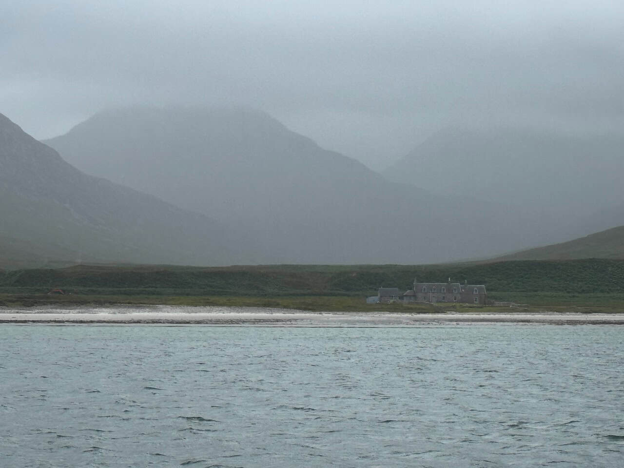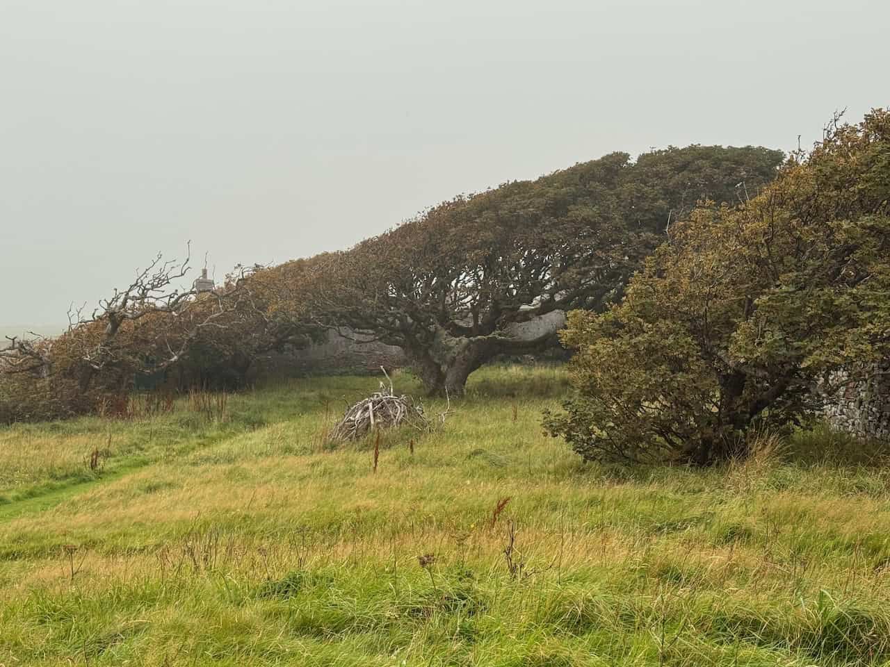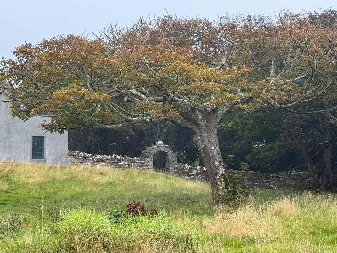 A haar fog rolled in over Westness. Our trees have been burned to a brown crisp by the storm of Storm Floris. It suddenly felt like Autumn.