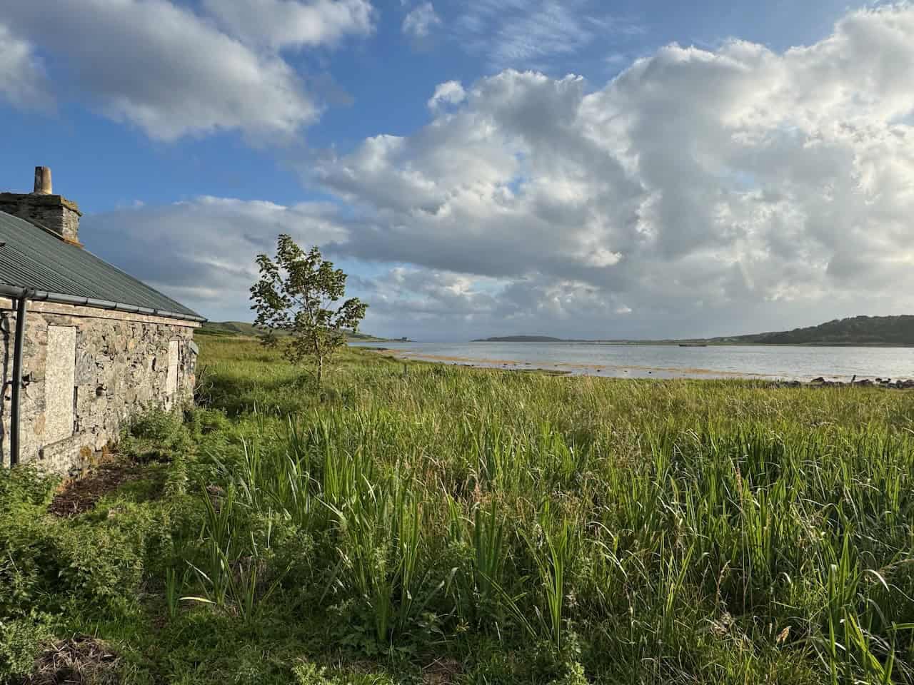 What has bubbled up is that the tiny stone cottage opposite ours came up for sale and we have been able to buy that. It's the Old School House - it was once the school room for a long-vanished village - together with the tiny school master's bothy to the right. Now it's used as a shed and floods in the winter and has no power or water, so we can't do very much with it... but it's a magical spot - and it means we can protect our view! Seeing as it's rather close across the water, maybe you can understand how happy we were when that came to pass this summer.