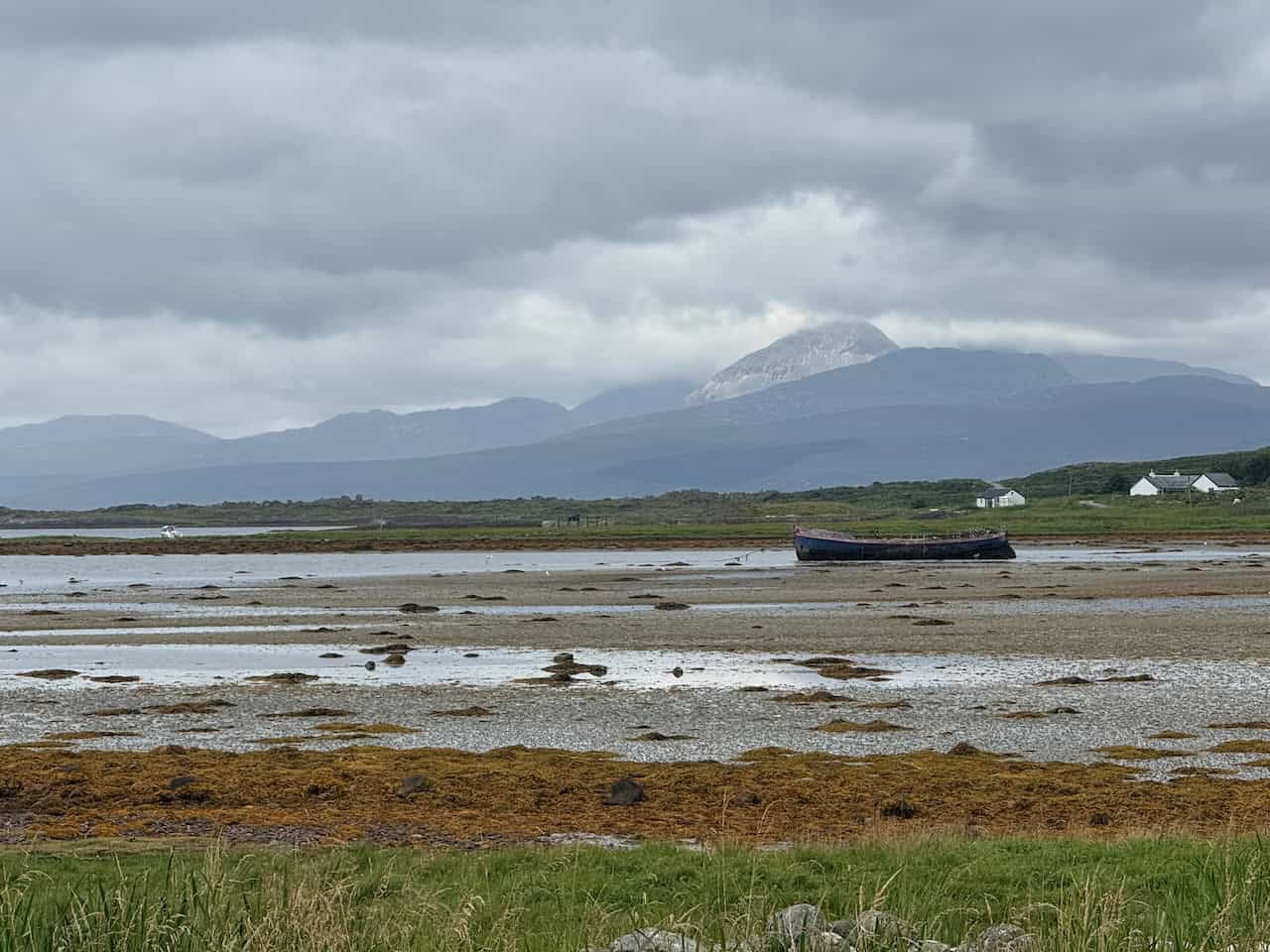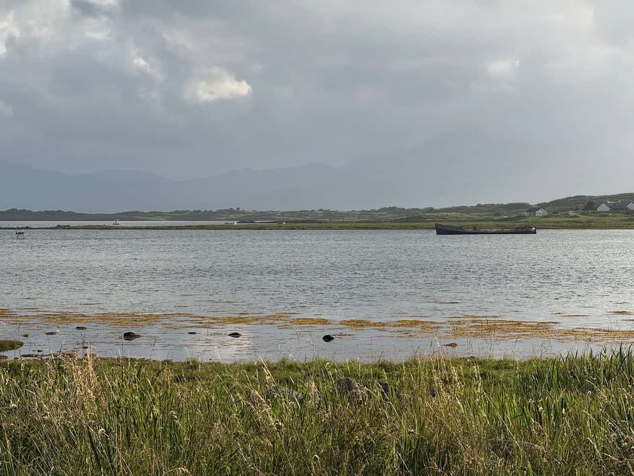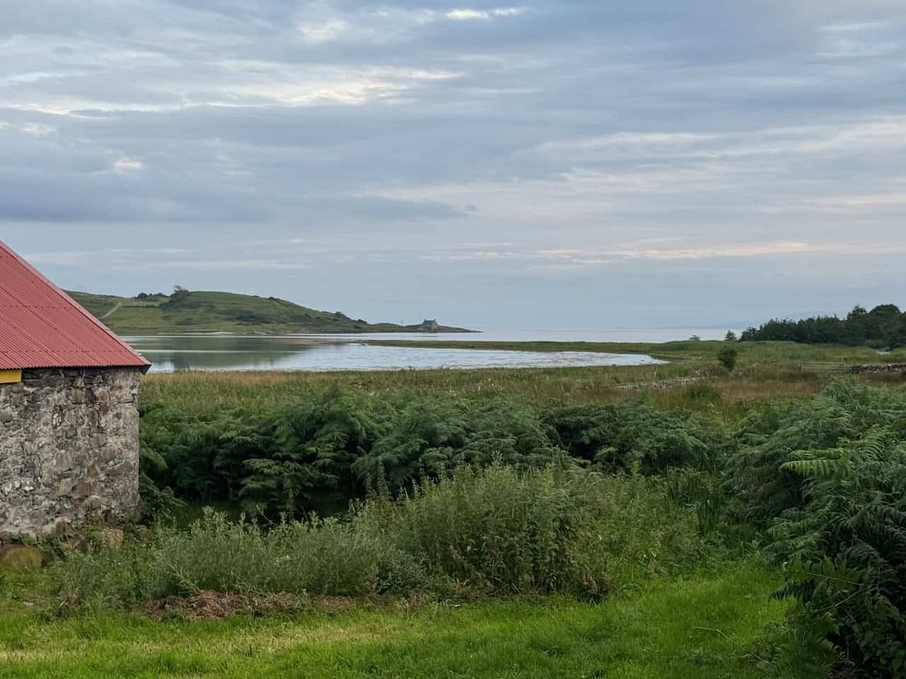 You couldn't quite see in the mist and haze, but there's the most amazing view of the Paps of Jura. And they get the sunset.