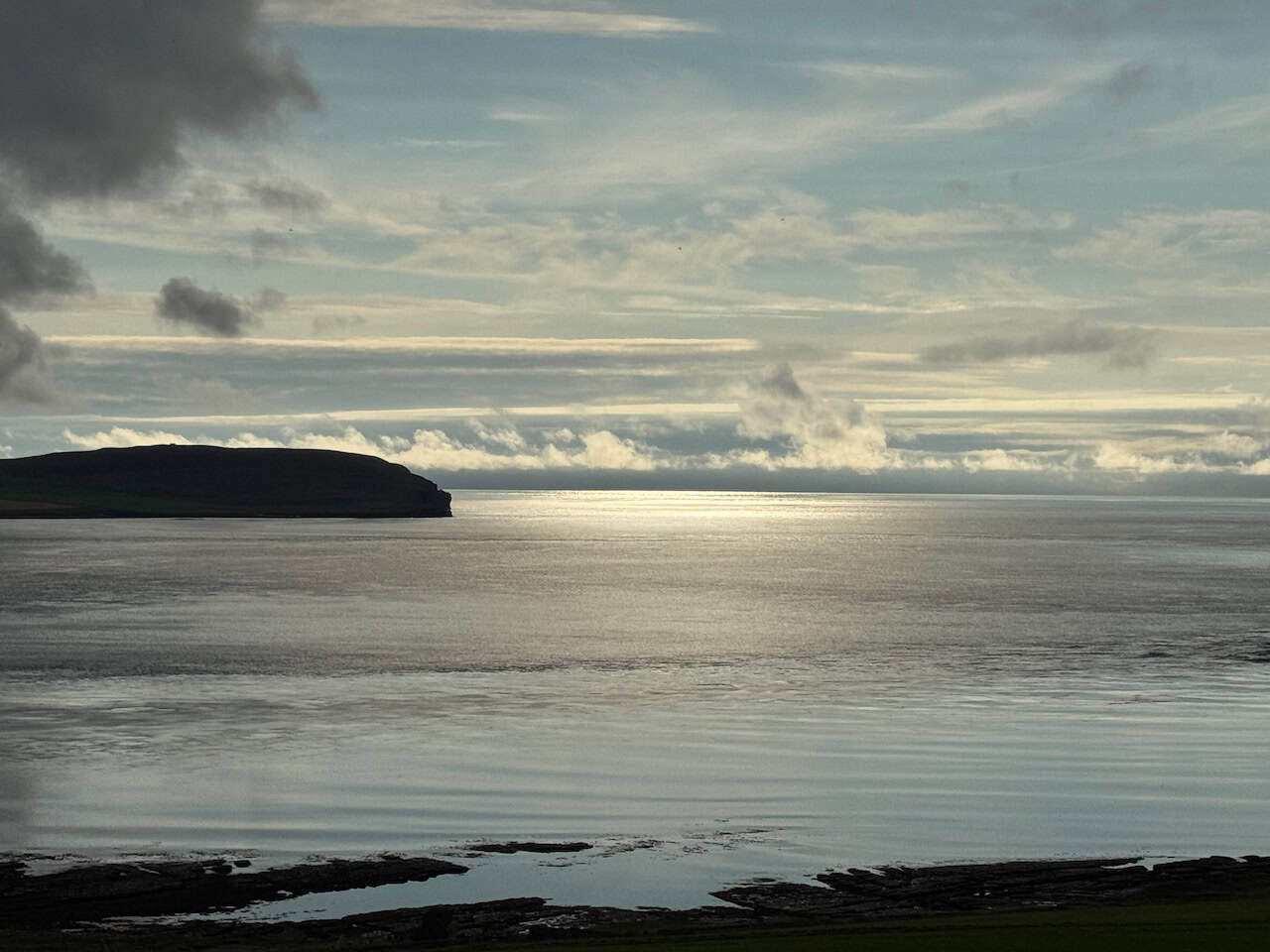 The next morning I had to leave to head to London. Flat calm seas over Orkney again.
