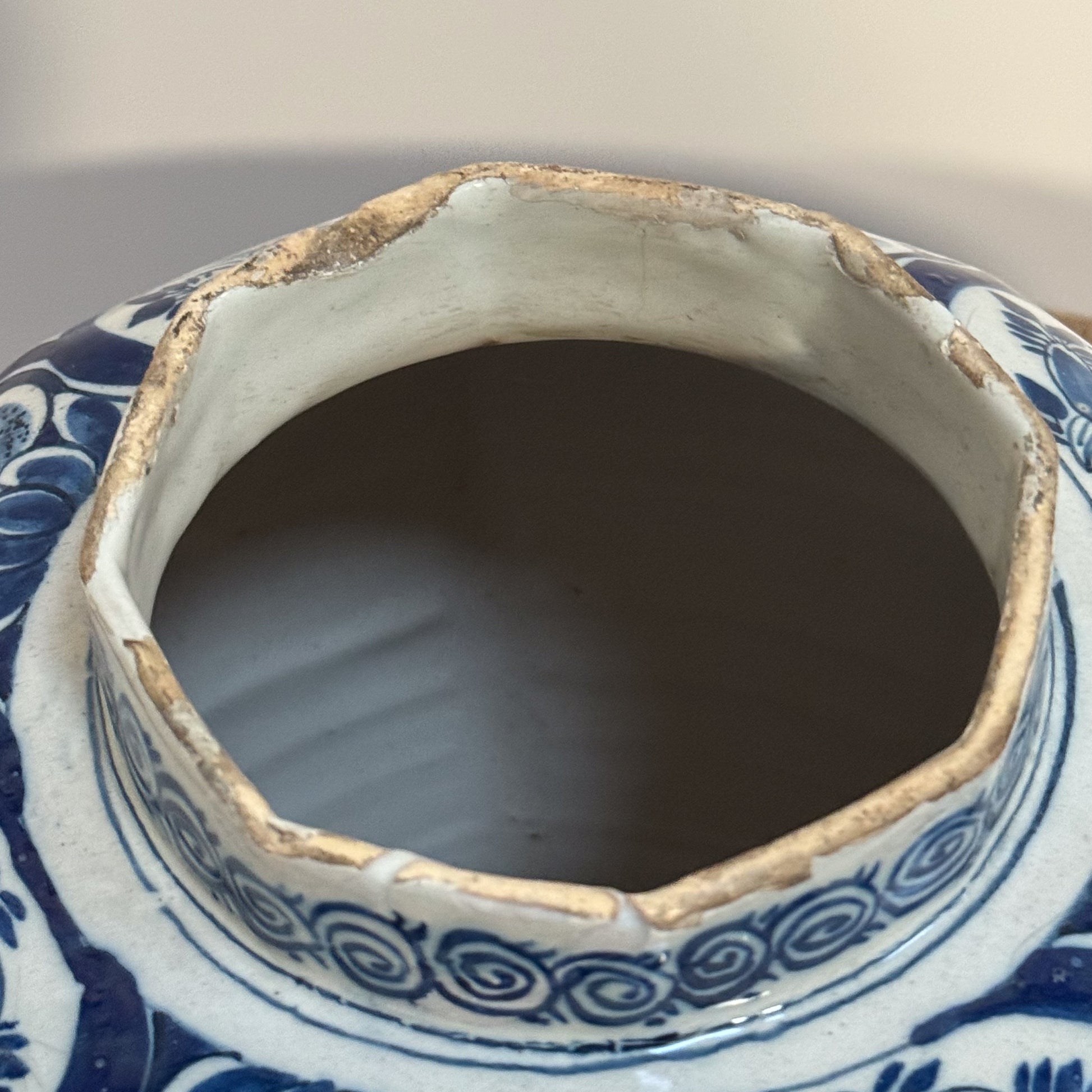 Lidded, and bearing a mark to the base, possibly De Porceleyne Fles, also known as Royal Delft.