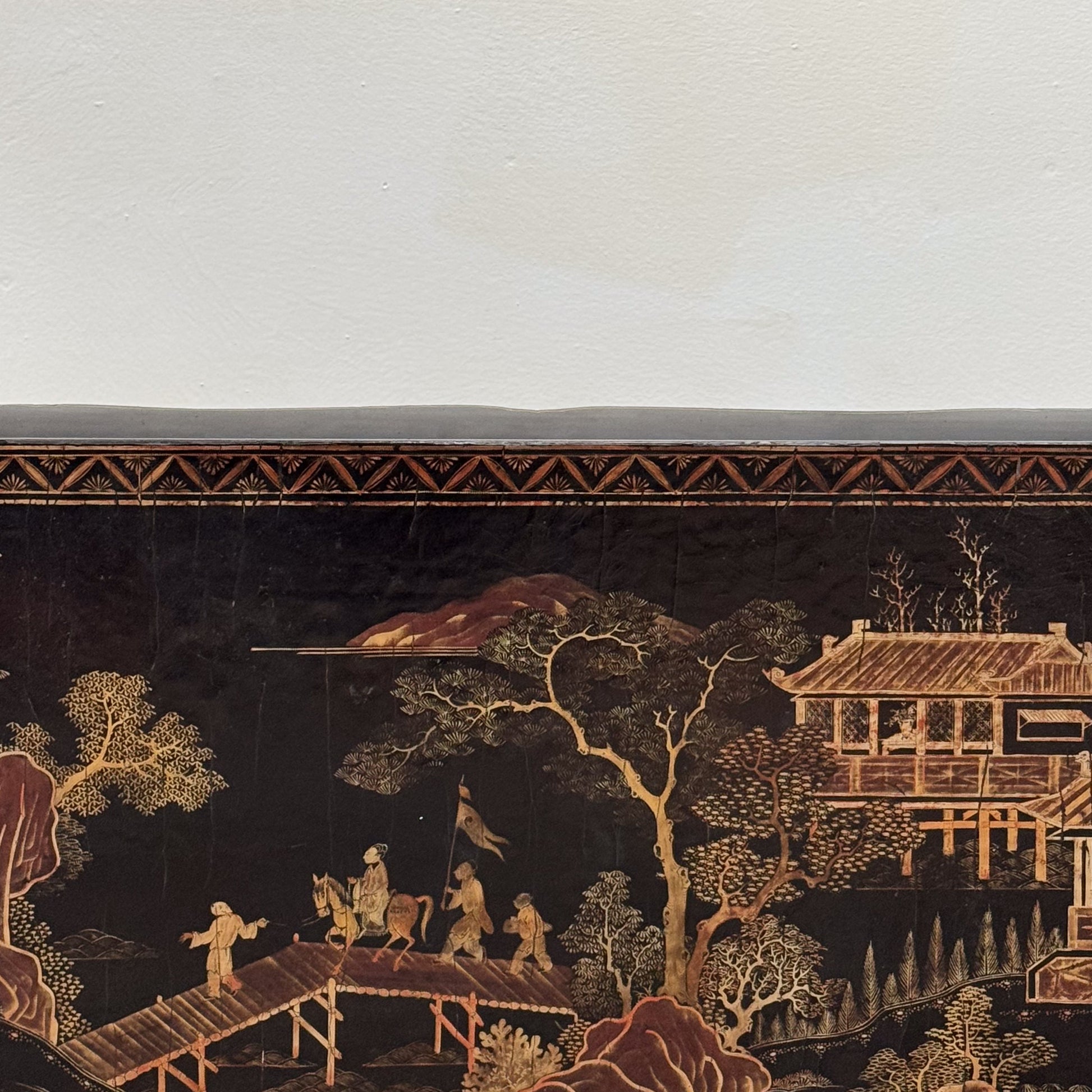 The superb rectangular top with an early 19th Century lacquered top depicting Chinese scenes.