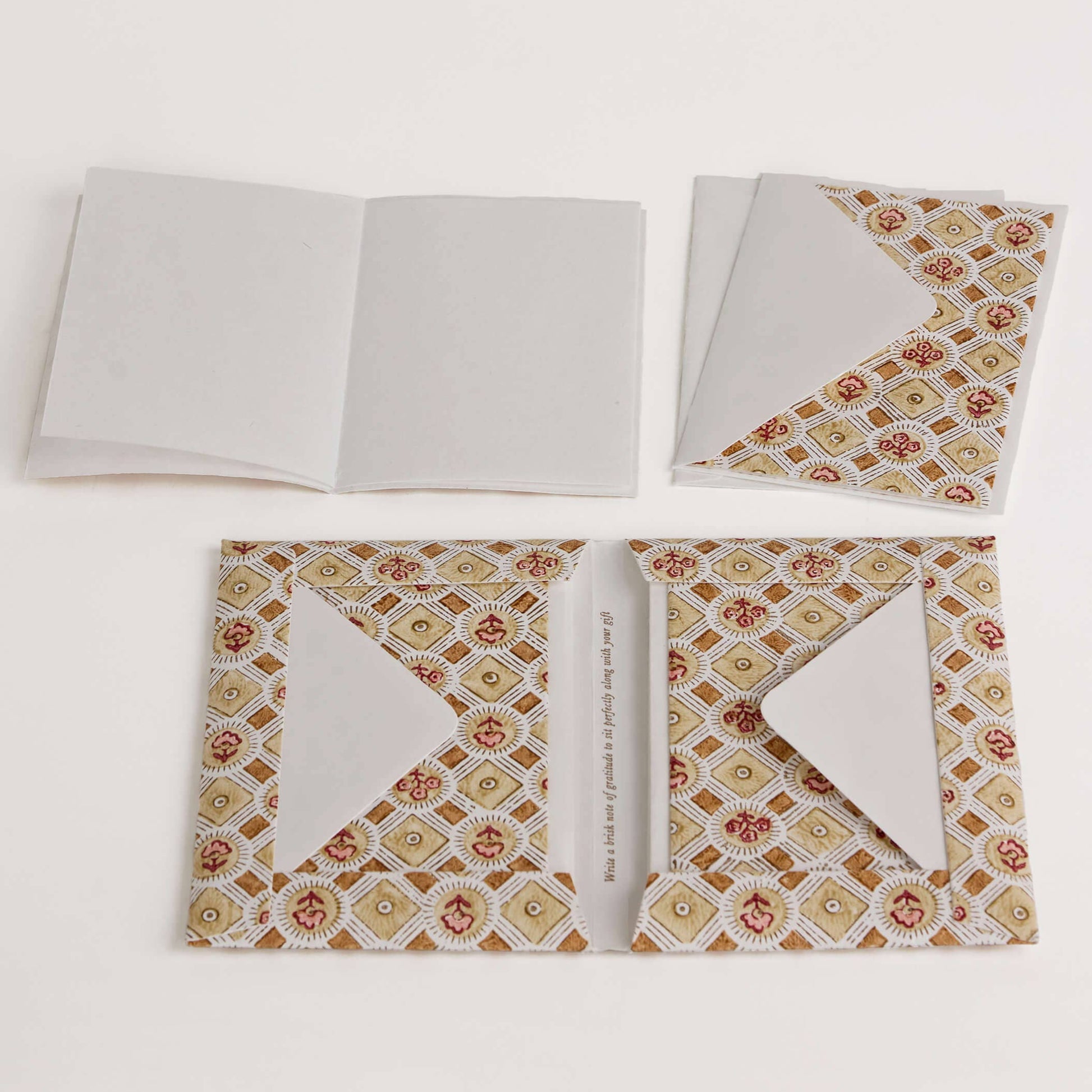 Produced in Small Batches only by Master Artisans who have been practicing the Craft of Paper Making & Block Printing for Generations. Each Pack Contains 8 Printed Greeting Cards with White Envelopes.