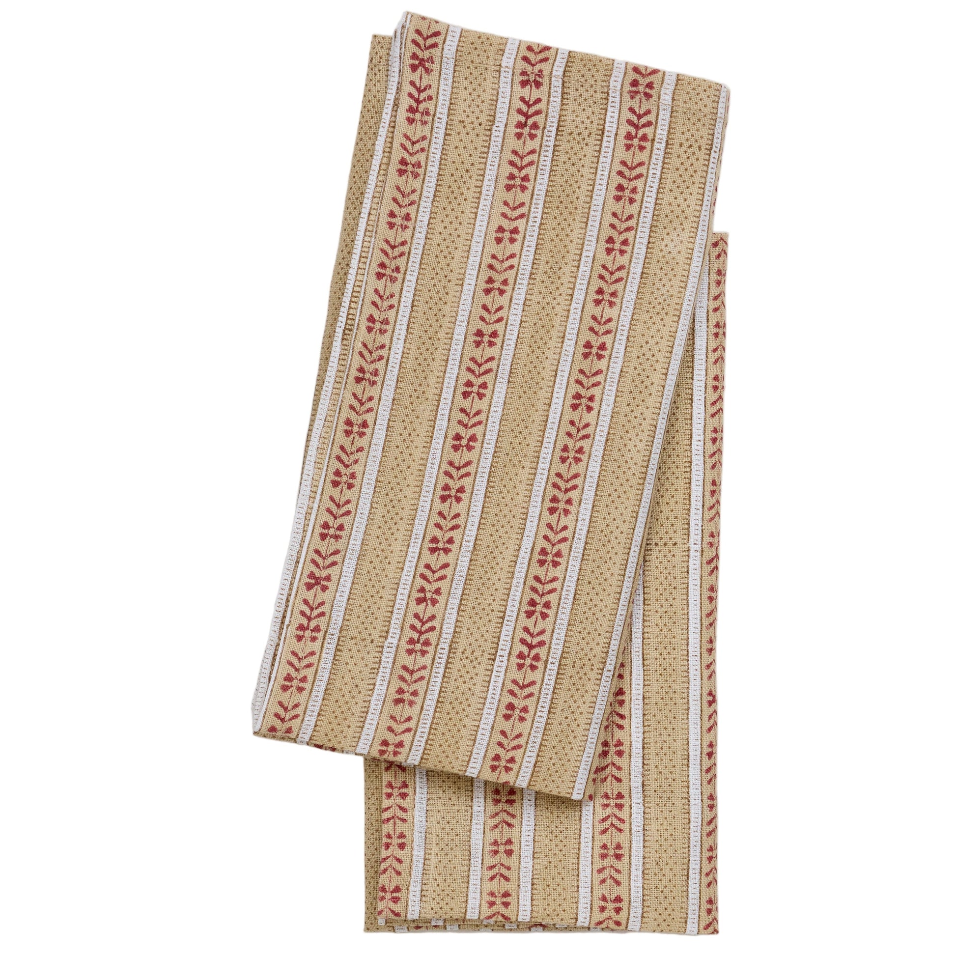 Block Printed Linen Napkin Set Floral Stripe: Ochre Red