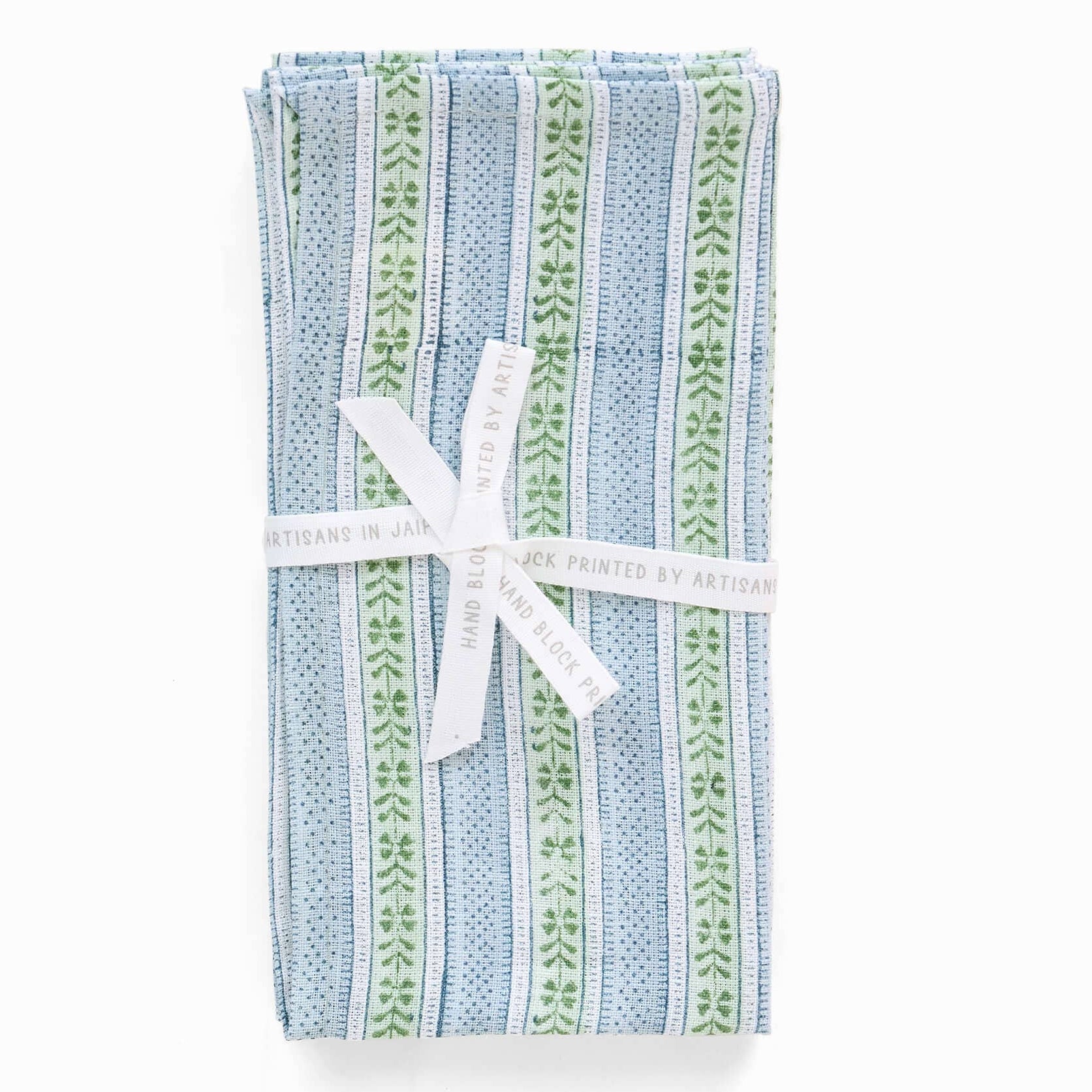 Block Printed Linen Napkin Set Of 2: Mint/Sky Rhea