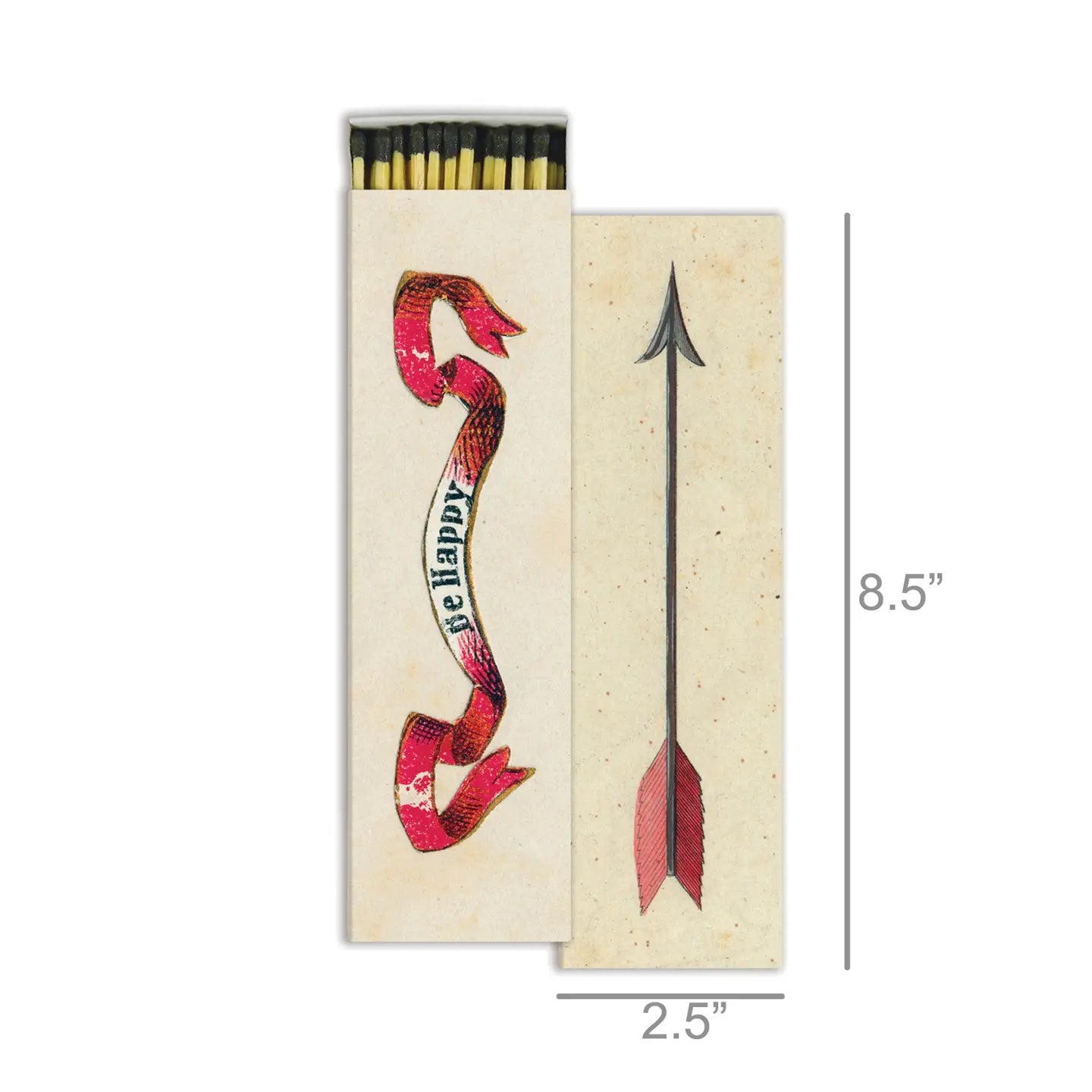 Decorated matchboxes uniquely decorated with coordinating match tips.