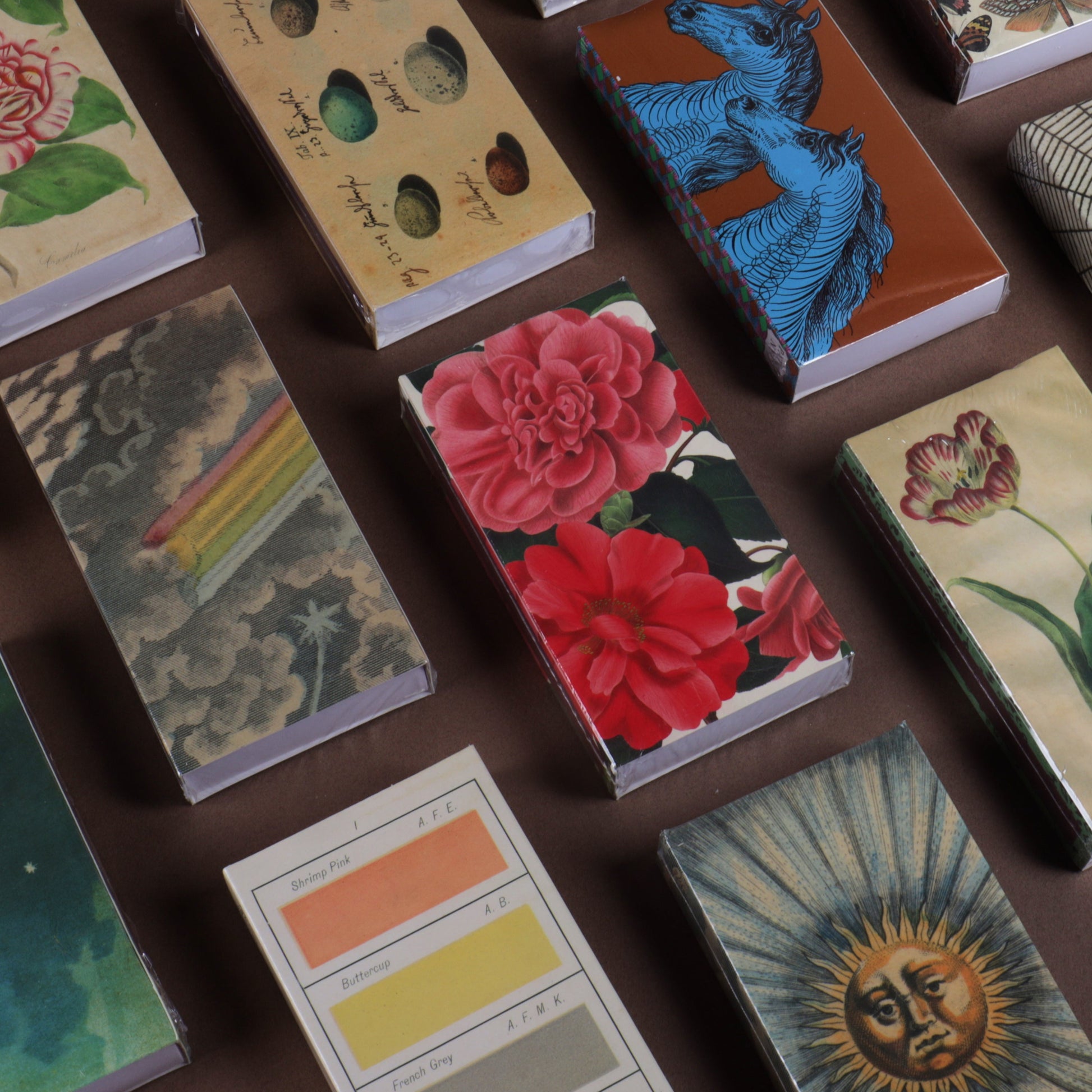 Decorated matchboxes uniquely decorated with coordinating match tips.