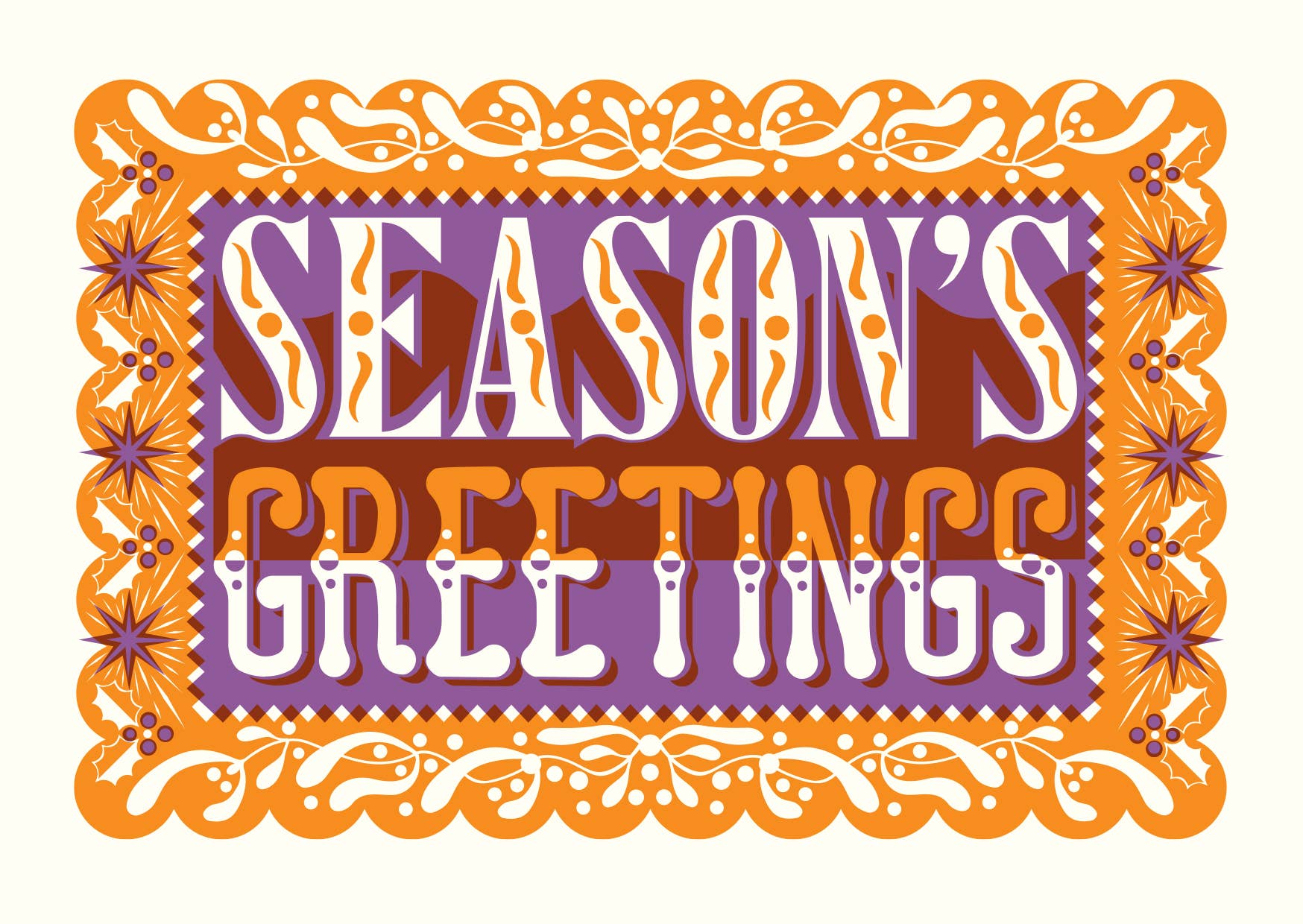 These joyous typographic festive greeting cards are printed in the UK on 280gsm uncoated paper and paired with a 100% recycled kraft, diamond flap envelope.