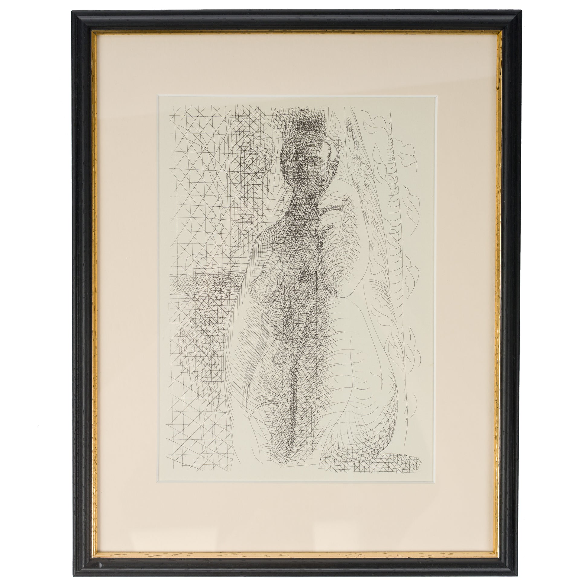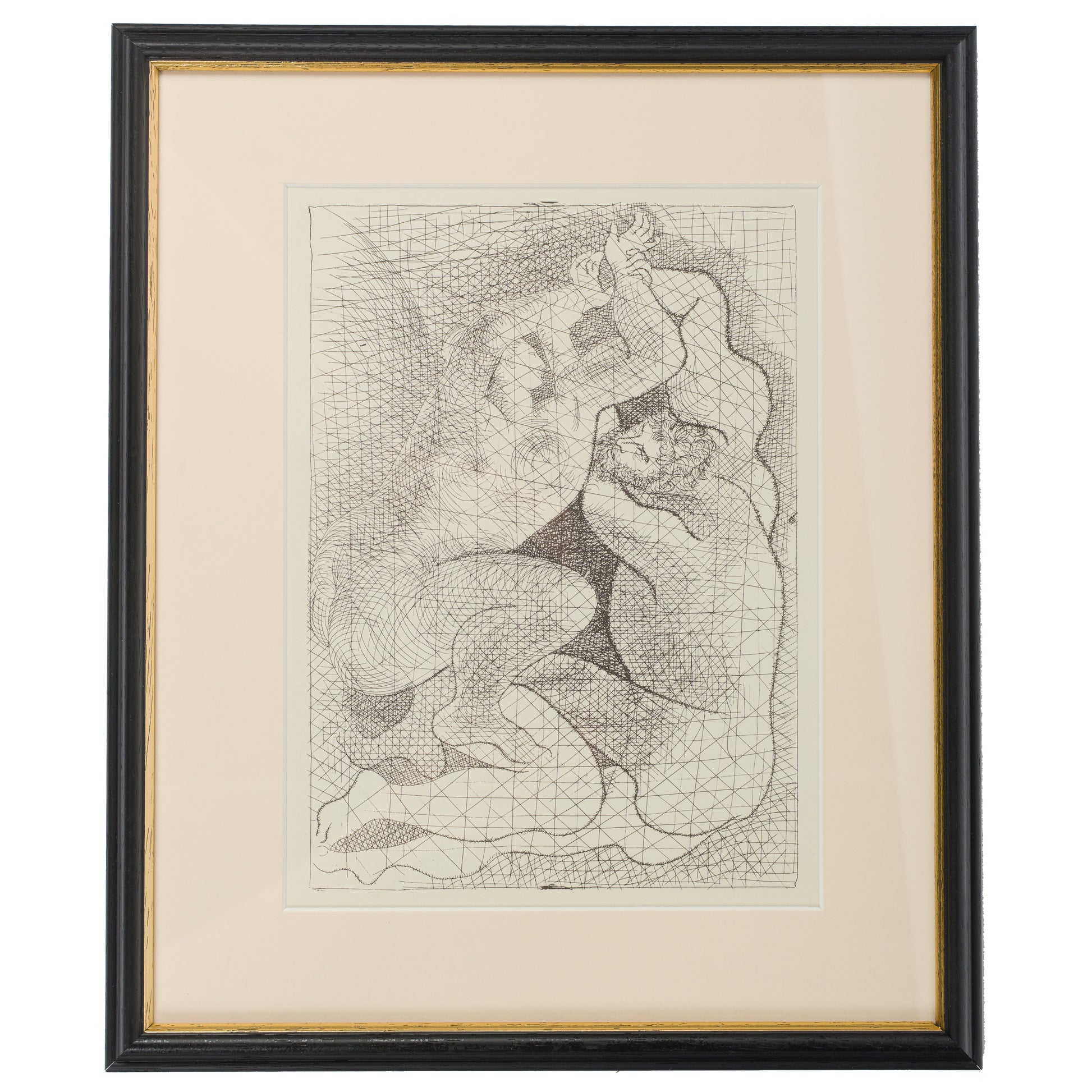 In 1930 Pablo Picasso was commissioned to produce a series of etchings by the art dealer and publisher Ambroise Vollard in exchange for paintings by Pierre-Auguste Renoir and Paul Cézanne. The works were not based on a particular literary source or even individually titled, but reflected Picasso’s erotic and artistic obsessions in an era of political turmoil as fascism spread through Europe. Picasso worked extensively on the set in during the spring of 1933, and completed the suite in 1937.