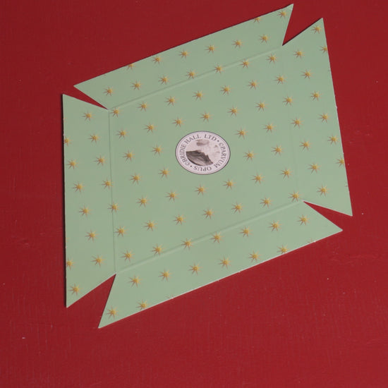 To assemble: Fold tray sides inwards, forming sharp, crisp creases along the scored lines. On the outside of the tray, use the enclosed stickers to close the seams and enjoy!