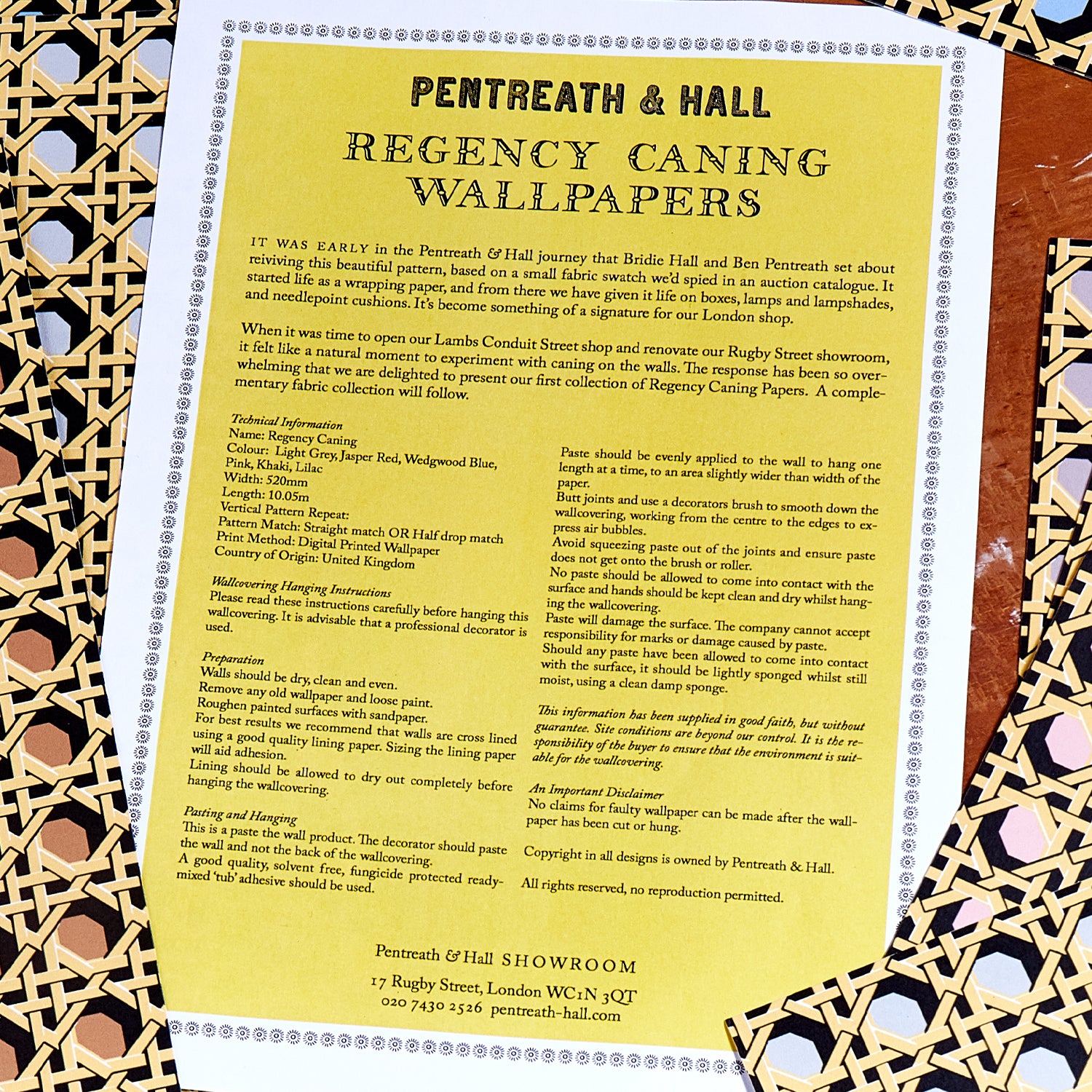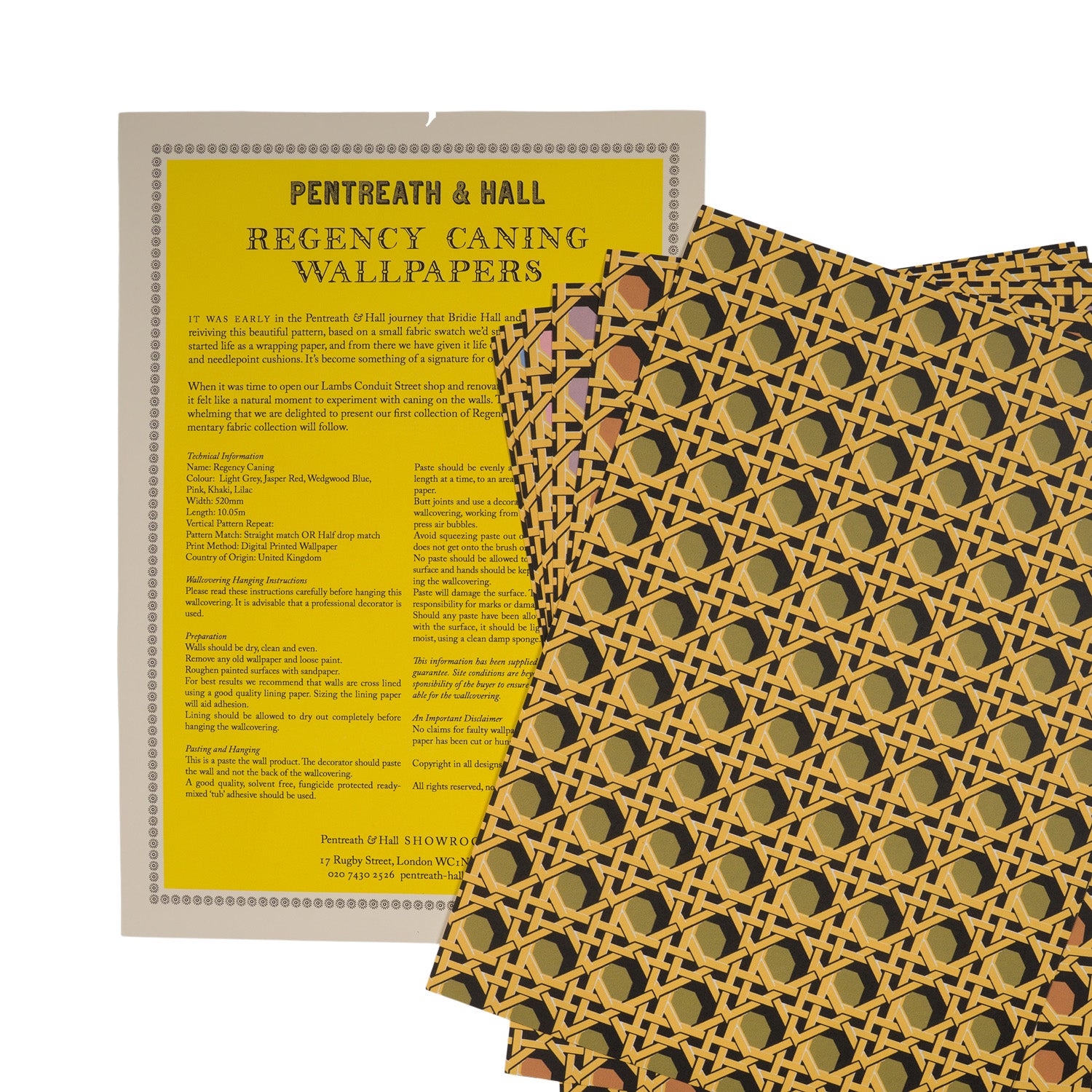 This sample pack contains 6 x A4 samples of the Pentreath & Hall Regency Caning Wallpaper and technical information.