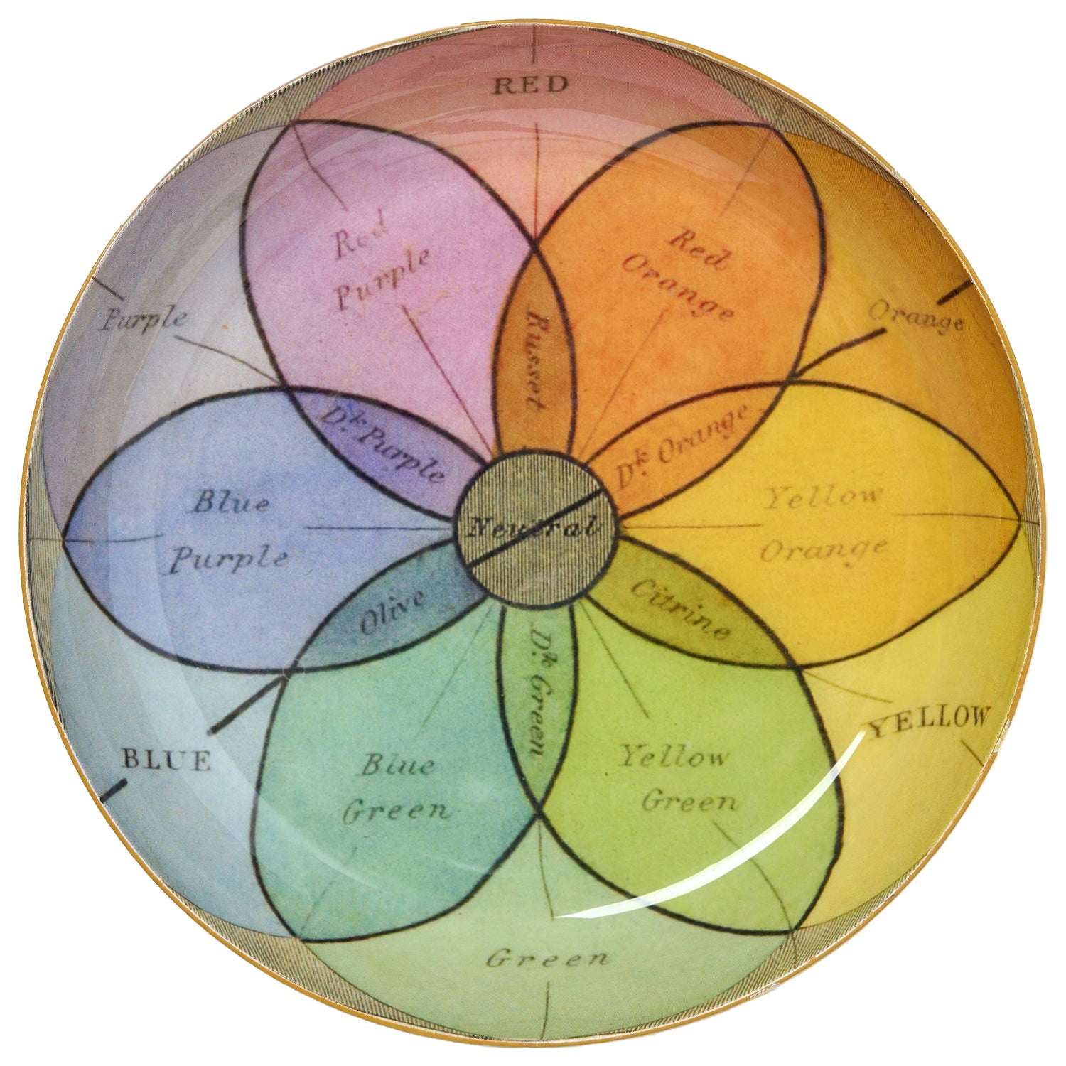 The design is adapted from an 1841 colour wheel by George Field, a celebrated colour theorist whose work influenced artists of the era. The flower-like wheel shows the relationship between primary, secondary, and tertiary colours, reflecting Field’s fascination with pigments and their harmony. Finished with a yellow-coloured base, this tray is perfect for holding jewellery, stationery, or small essentials. Each piece features subtle variations and finishing marks that celebrate traditional craftsmanship.